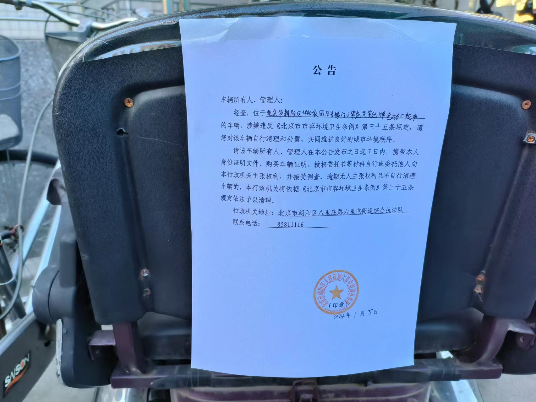 六里屯街道关于清理整治废弃电动三四轮车的公告(华阳家园18号楼...