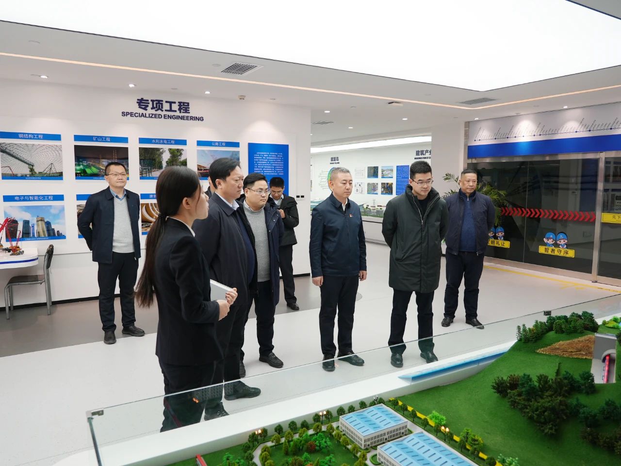 工作交流期间,徐剑楠一行参观了山西安装企业展示中心。浙商中拓集团新能源工程部总经理王敏、电池产业拓展部总经理杨辉、集团副总经理王建军及相关负责人参加会谈。