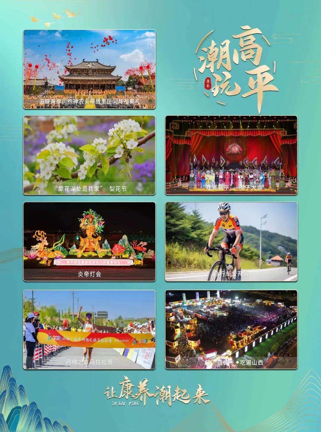 举办山西(高平)第一届“炎帝灯会”、“文旅局长带你逛”大型联动直播活动、2023年高平·梨花节系列活动、5·19中国旅游日活动、9·27世界旅游日高平时光文旅护照系列活动、“品读高平”“非遗高平”“康养高平”“夜遇高平”“露营高平”“旅拍高平”六条主题线路发布等一系列活动,做大做强了高平旅游品牌。