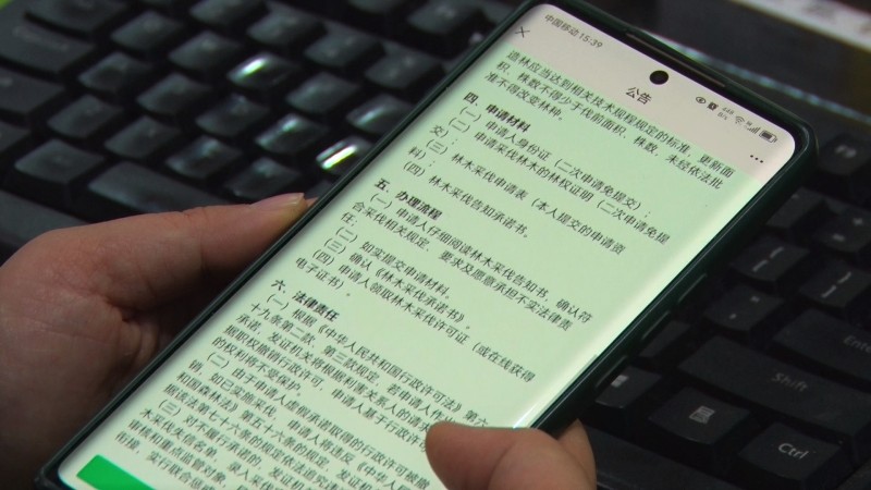 去年以来,我县全面推行林木采伐智办系统,所有林权证持有者在手机上即可申请林木采伐许可证。