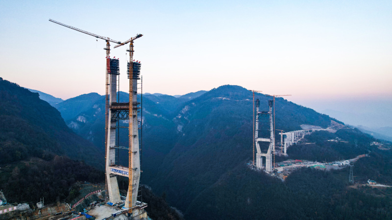 为确保此次西岸主塔顺利封顶,工程项目部创新采用了“台阶式”浇筑方法,为人员、机械进场创造了有利条件,解决了峡谷陡坡地形条件下桥梁基础施工难题。