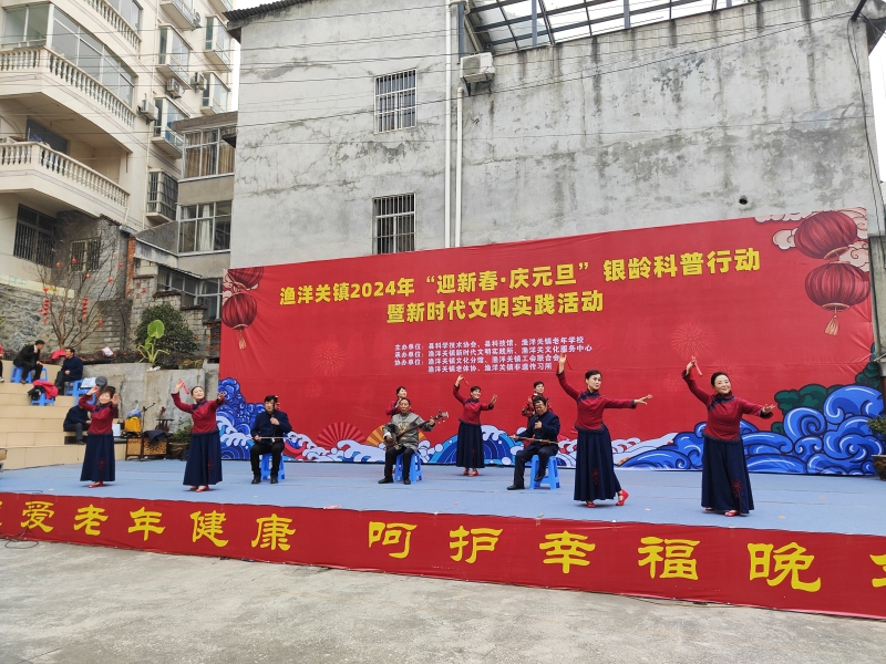 在渔洋关镇文化站,当地2024年“迎新春· 庆元旦”银龄科普行动暨老年学校汇报演出欢乐开演。百余名“银发”学子各展所长,表演了山歌、广场舞、葫芦丝等节目。今年61岁的郑蓉是渔洋关镇老年学校的一员,在学校里,她报名学习了舞蹈、声乐等多个课程,当天参与了多个节目的成果展示。郑蓉说,通过三个多月的培训,她最爱好的是舞蹈和唱歌,陶冶了情操又锻炼了身体,生活很充实。