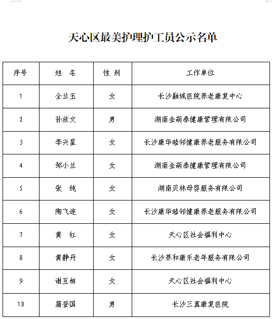 【公示】长沙市天心区总工会第二届“六个最美”评选结果公示
