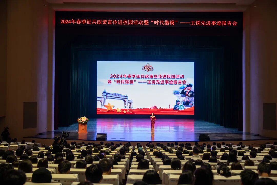1月5日,西乡塘区人民政府征兵办公室联合广西大学征兵工作站,开展征兵政策宣传进校园活动暨“时代楷模”——王锐先进事迹报告会。报告会以“携笔从戎 圆梦军营”为主题,邀请“时代楷模”王锐分享他从一名地方青年成长为“时代楷模”的故事,以榜样力量激发广大适龄青年投身军营,报效祖国。