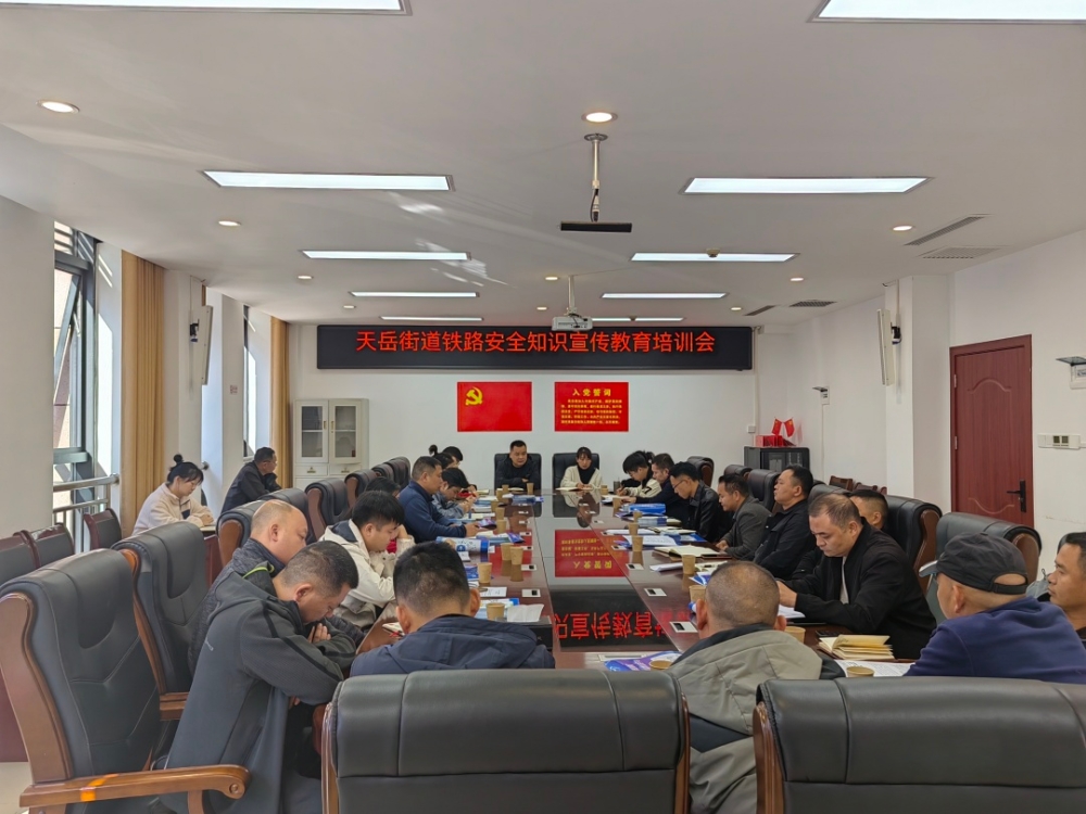 为贯彻落实湖南省铁路护路办发布的《关于进一步加强春运春节重点时期铁路护路联防工作的通知》文件精神,天岳街道召开专题会议,要求各村(社区)、部门强化宣传、压实责任、多措并举,切实抓好重点时期铁路护路联防工作,确保铁路运输安全和沿线治安稳定。