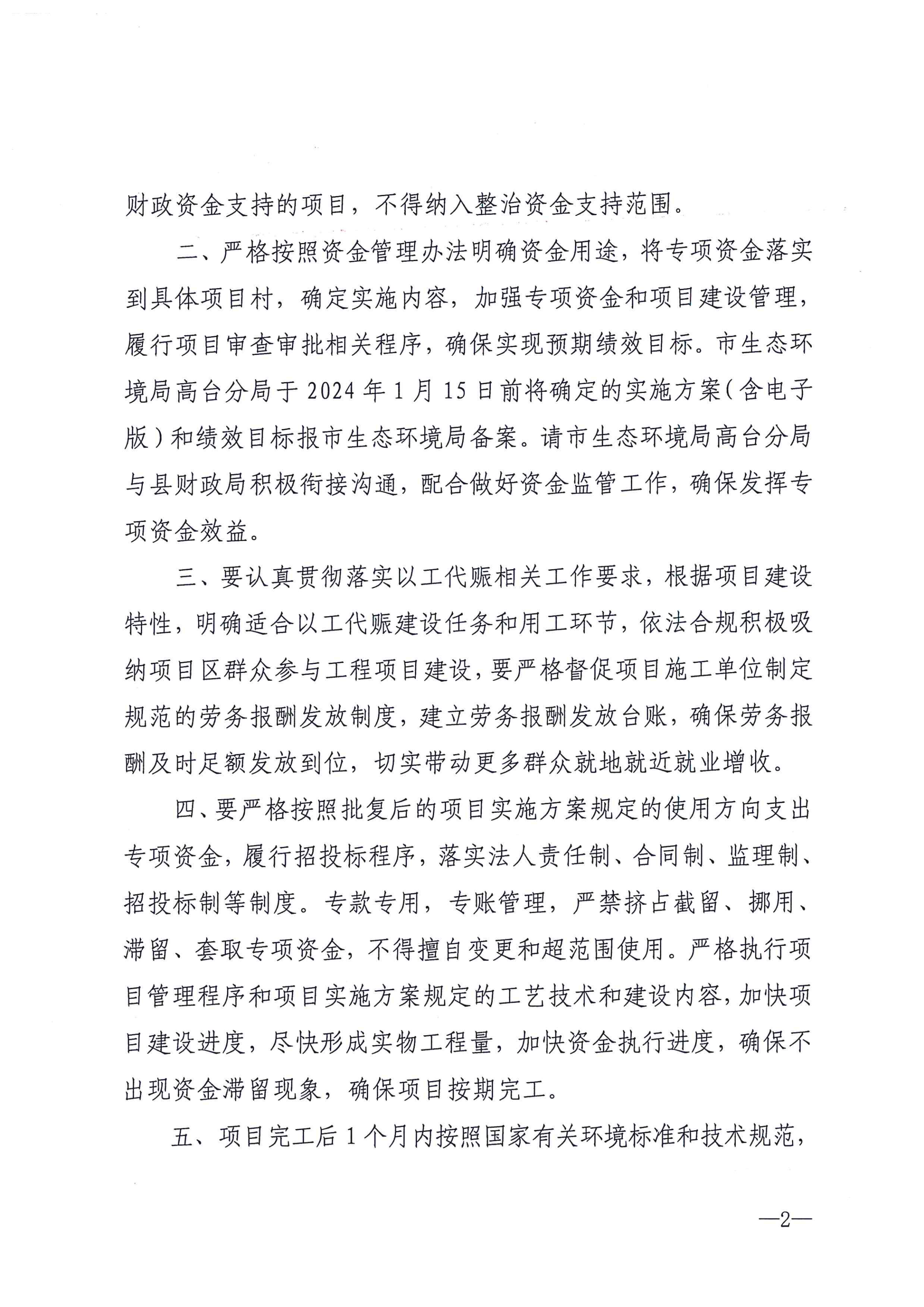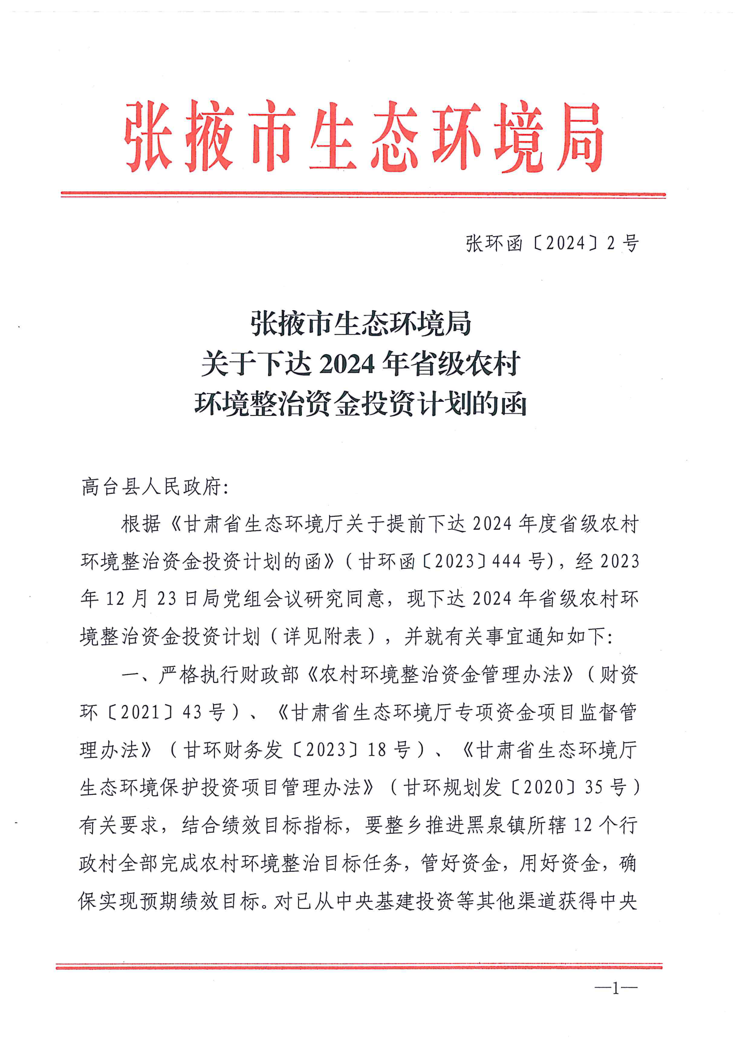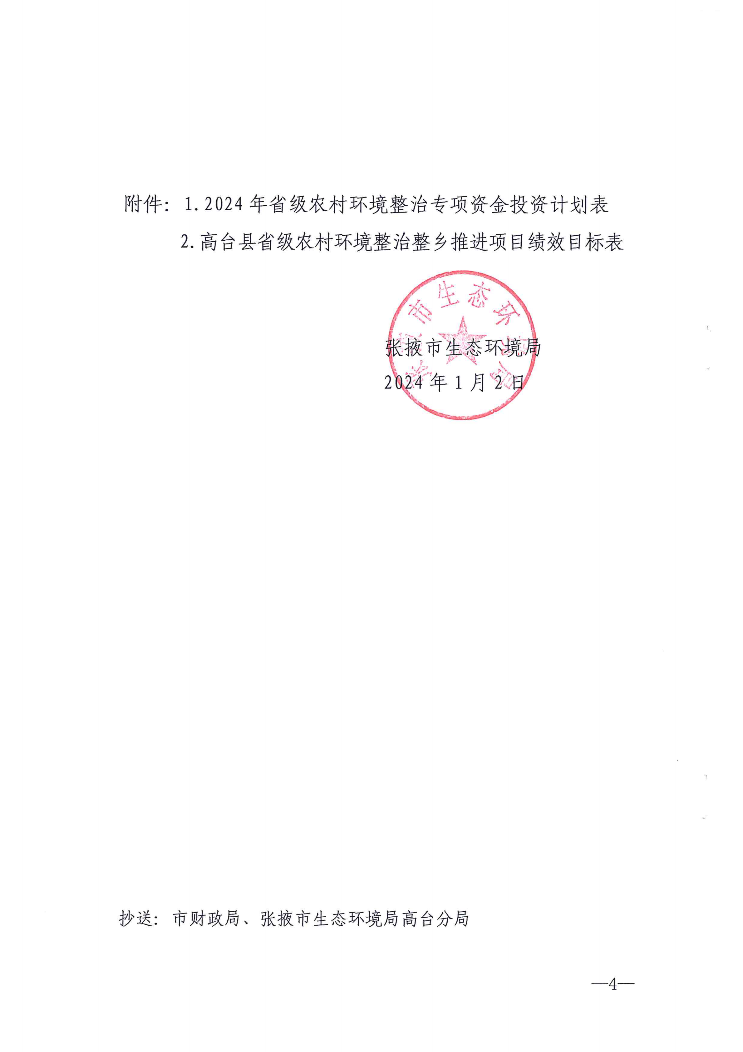 关于下达2024年省级农村环境整治资金投资计划的函(张环函〔2024〕2号)