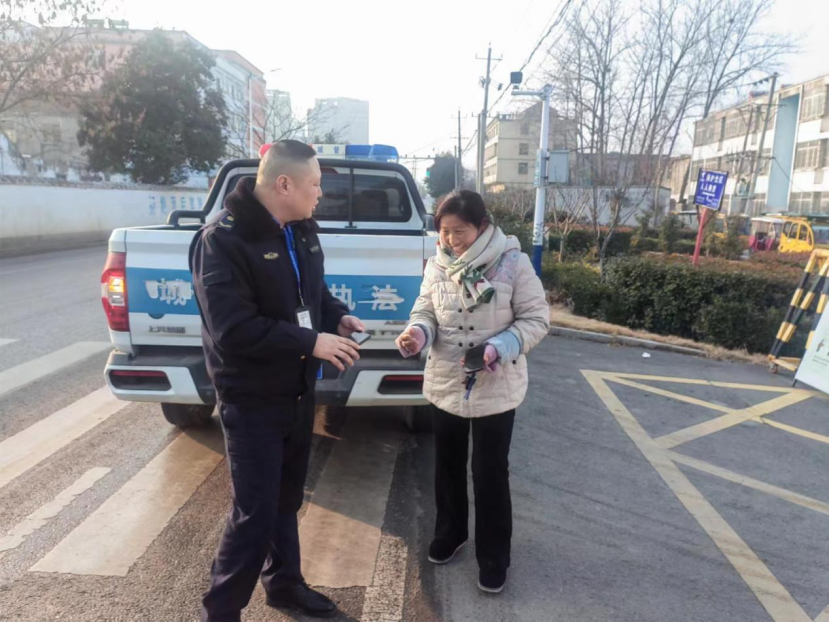 1月11日上午8时许,固镇县城市管理局行政执法大队一中队退役军人队员路军和同事巡查至胜利路二中门口减速带时,对面迎光飘过一个“铁片”,考虑到可能存在的安全隐患,当即靠边停车查看情况。