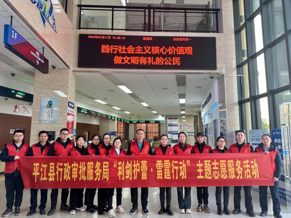 继1月10日迅速传达学习全县“利剑护蕾·雷霆行动”集中整治推进会议精神后,平江县行政审批服务局积极行动,结合主题教育、志愿服务活动,以政务服务大厅为阵地,利用宣传栏、电子显示屏、广告机等平台,广泛开展形式多样、内容丰富的法治宣传教育,保持高压震慑态势,严厉打击侵害未成年人的违法犯罪行为。