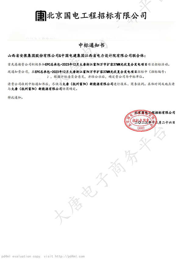 12月26日,集团第四工程公司中标浙江大唐富阳万市37MW农业林业光伏项目,中标金额5278万元。中标阿鲁科尔沁旗优质乳肉兼用牛数智化园区建设项目EPC(设计、采购、施工) +O(运营)。中标金额15083.3万元。