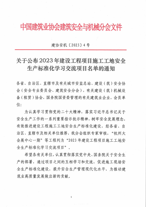 2024年1月3日,湖北山安沁水东连接线交通枢纽工程项目获评中国建筑业协会建筑安全与机械分会2023年度国家“建设工程项目施工安全生产标准化学习交流项目”。