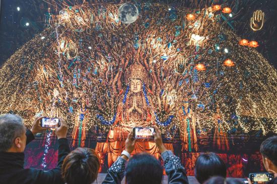 新渝报讯(记者 李东 陈柯男 文/图)为丰富人民群众春节期间的文化生活,让更多群众享受到文物数字化成果,原定于2023年12月28日闭展的“美时美刻——中国丝路遗产数字活化科技艺术巡展”将延至2024年2月24日(农历正月十五)。广大游客在元宵佳节前均可前往大足石刻数字展示中心,欣赏大足石刻首次大规模新媒体作品展。 该展于2023年12月9日正式开展,共呈现多种类型作品97件。作品聚焦中国丝绸之路的物质文化遗产,以大足石刻为起点,探索数字科技语境下的丝路遗产表现“新全景”,建构科技与艺术相融合的“新方法”,力图充分凝练丝路遗产的历史价值、文化价值、审美价值、时代价值,推动传统文化遗产的创造性转化和创新性发展。
