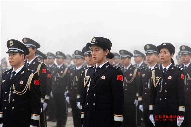 活动现场,百位民警身着警礼服整齐列队,警容严整、警姿挺拔,向国旗庄严敬礼。在豪迈的中国人民警察警歌声中,民警仪仗队步伐铿锵,护送警旗入场,全体民警面向警旗重温公安机关人民警察誓词。