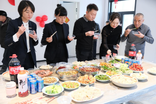 在锅碗瓢盆碰撞声中,一盘盘热腾腾的饺子和几十道精美家常菜摆满了餐桌,烹、炸、卤、酱一应俱全,品种丰富,色香味俱全,让人垂涎欲滴。大家围在桌子旁,享受着舌尖上的美味,喝着饮料,拉着家长里短,毫不拘谨地畅所欲言,谈论有趣的邻里故事,分享自己与小区的经历,感叹社区和小区的变化。欢声笑语回荡在服务站的每一个角落,睦邻节不仅让居民们大饱口福,更增进了邻里之间的感情。活动最后由美食品鉴员对每道菜进行点评,评选出色香味俱全的三道美食,最终获得票数最高的美食获得荣誉证书。