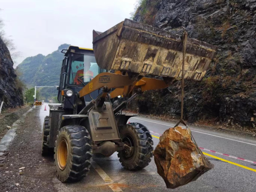 马山公路养护中心及时清理山体落石消除隐患