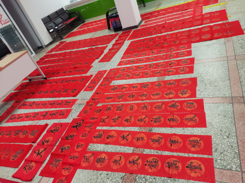 席东升挥毫泼墨,用娴熟的笔法抒发对美好生活的赞美。不一会,一幅幅饱含真情、寄托美好祝愿的春联铺满活动室。村民们拿到春联,满脸笑意。