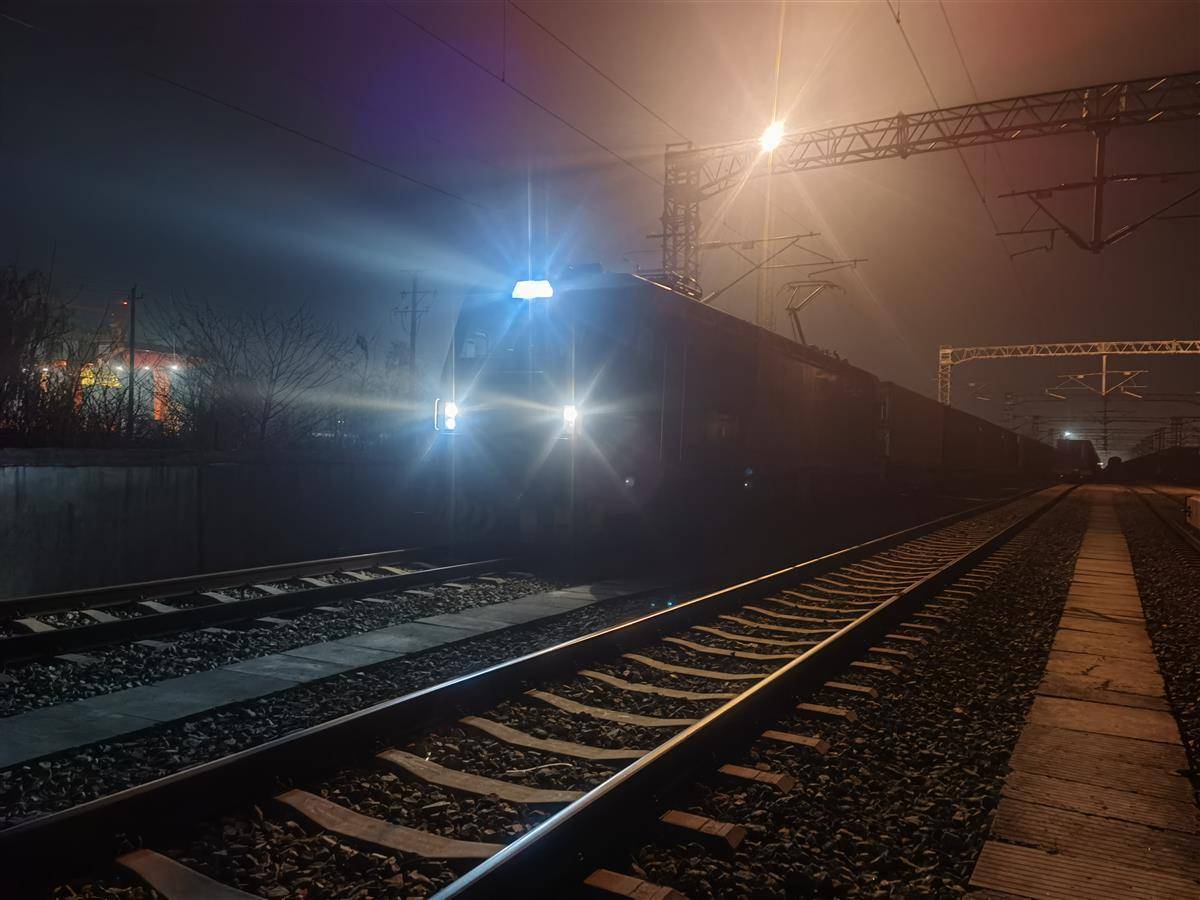 当日凌晨2时,气温低至0℃以下,位于东西湖区的中铁联集武汉中心站货场内,一辆辆装载着集装箱的运输车接续驶入26米高的橙红色龙门吊下,操作人员操纵设备,“空中抓娃娃”般熟练地将40吨重的集装箱稳稳地放入火车皮内。