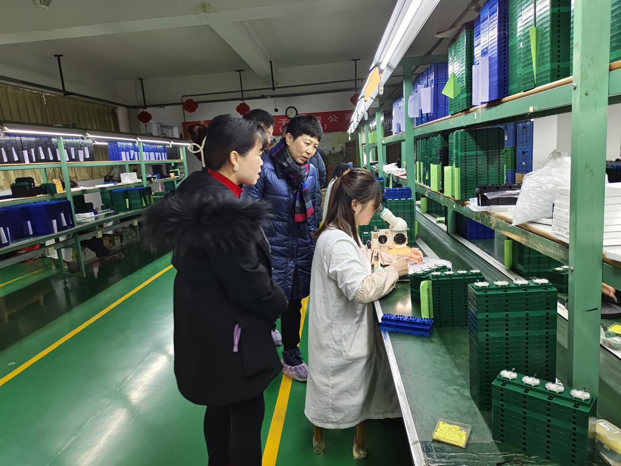 辜喜一行来到对口帮扶企业武汉晨龙电子有限公司,实地考察公司生产经营情况。查看了晨龙电子钟表机芯生产设备及生产情况,与一线工作人员亲切交流,听取企业负责人介绍企业的基本情况,重点询问了企业生产和经营中面临的问题和困难。