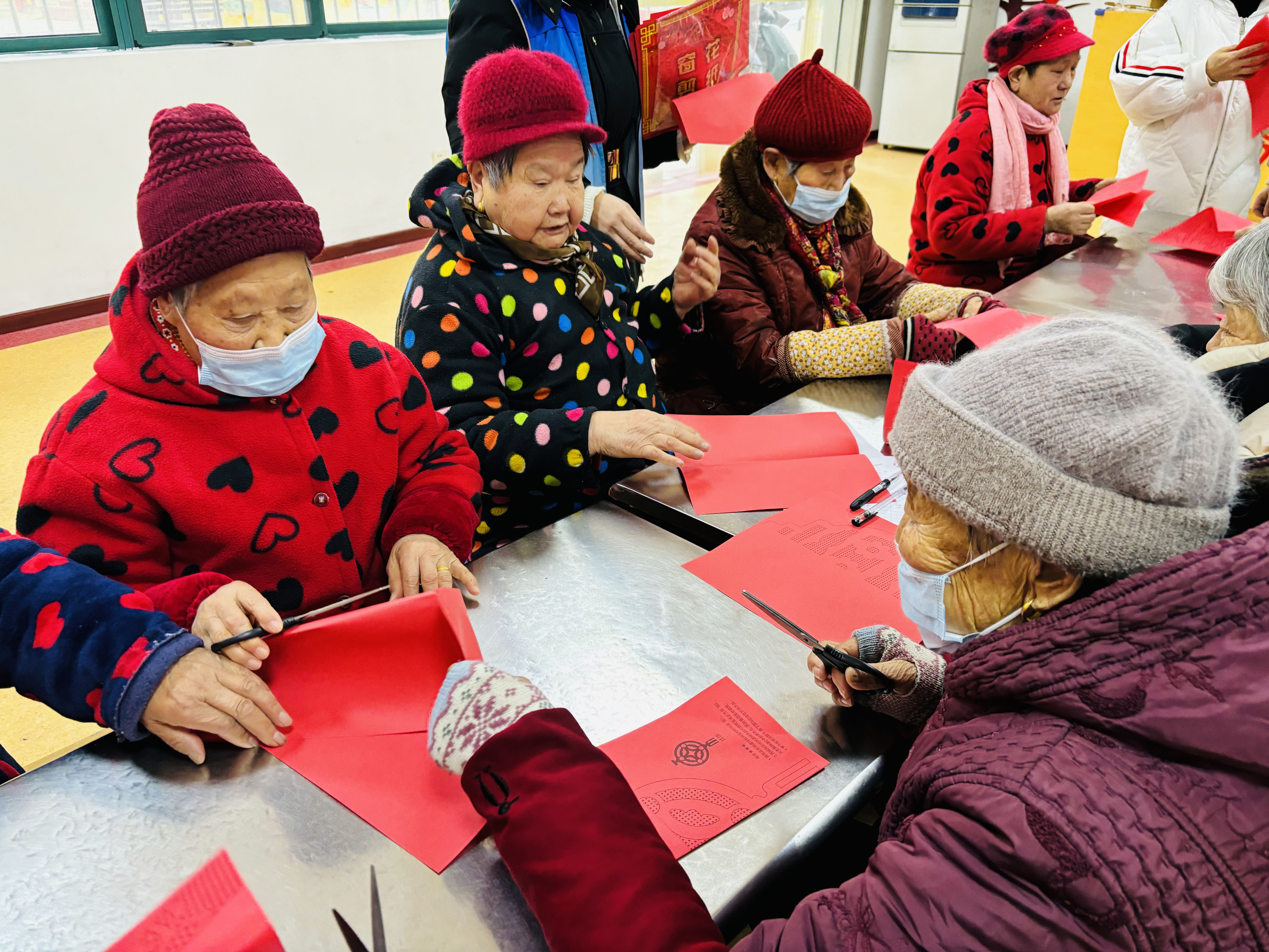 新征社区与团结社区不约而同地为辖区老人举办了一场剪纸活动,老人们一边喝着八宝粥,一边巧手剪出各式窗花。红灯笼、红鲤鱼、福字等作品,饱含着居民对新一年的美好祝福与希冀。金鼎湾社区联合湖北供销福合养老服务有限公司及怡居乐关爱老年人服务中心在龙耀华府二楼为辖区居民带来精彩的文艺演出,现场掌声不断。三民社区老年服务中心内,手工爱好者们做起了手工,象棋爱好者开展了精彩的博弈,大家围坐在一起,边品粥边聊天,充满欢声笑语。随着腊八粥一起送到居民手中的,还有革新社区志愿者们手写的龙年春联和福字。现场设置的炸圆子、龙形糖画等传统民俗小吃和民间艺术,更是凸显了春节将至的热闹氛围。