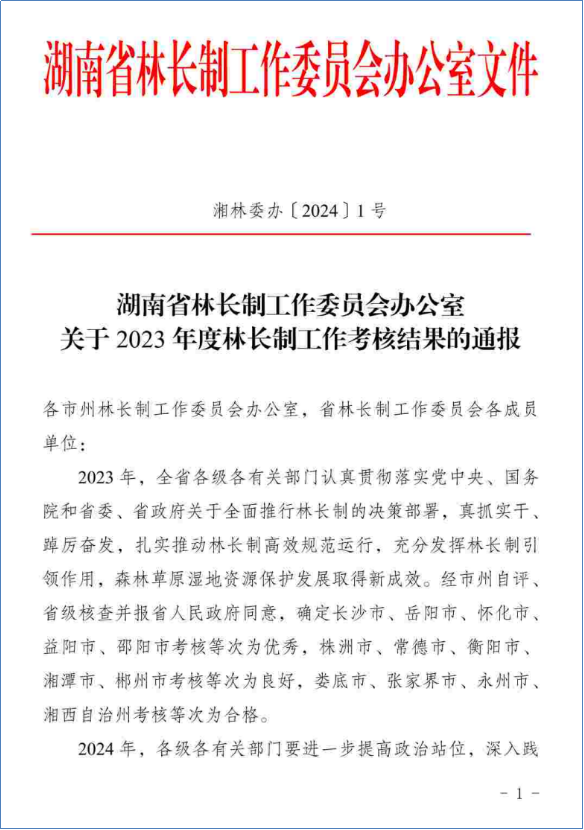 近日,湖南省通报2023年度林长制工作考核结果,岳阳市考核等次再获优秀,岳阳市连续三年排名全省三甲行列。