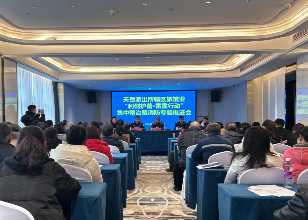 1月21日,天岳派出所召开了辖区旅馆业利剑护蕾雷霆行动集中整治暨消防专题推进会,邀请辖区内82家旅馆业负责人参加会议。