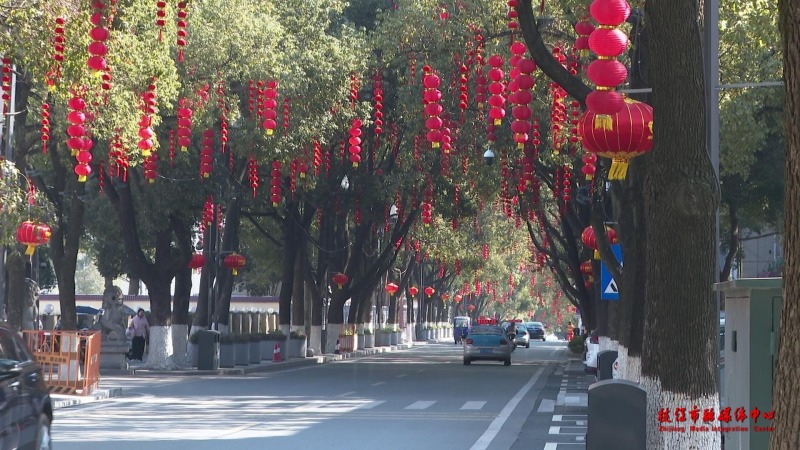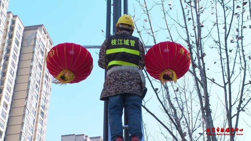 市城市管理综合执法大队市容中队队员杨雪介绍:“我们从上周开始对城区江汉大道、迎宾大道、团结路、沿江大道等14条主次干道及各主要路口悬挂灯笼,预计在1月28日全部安装完毕,为城市增添喜庆祥和的节日气氛。”