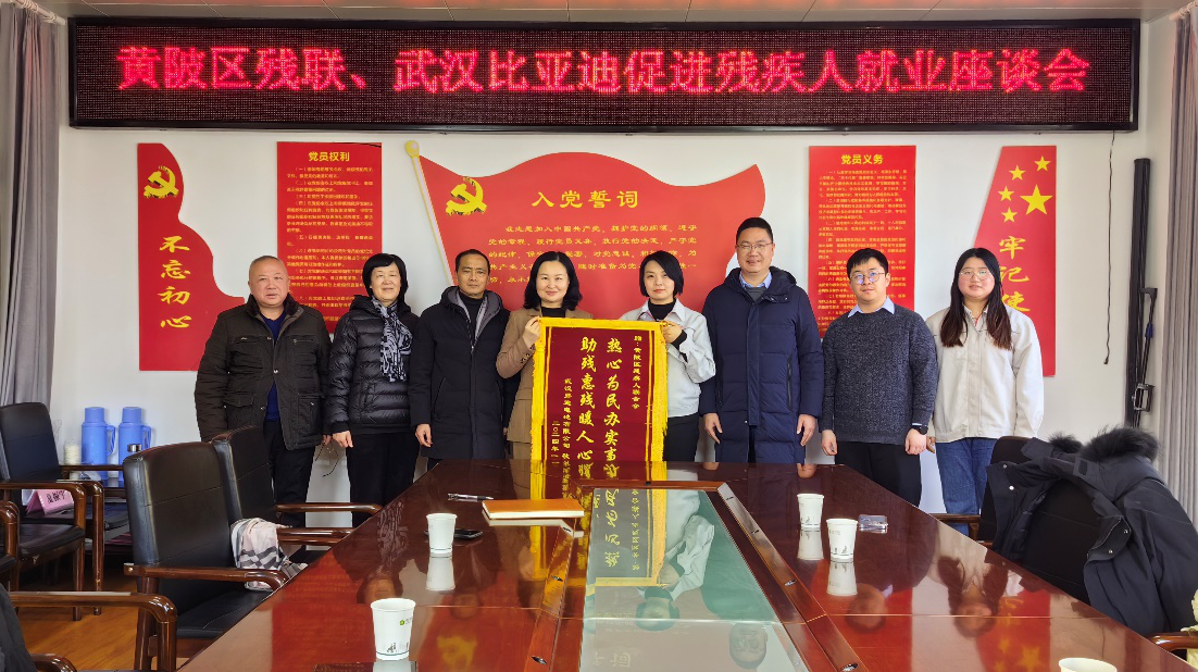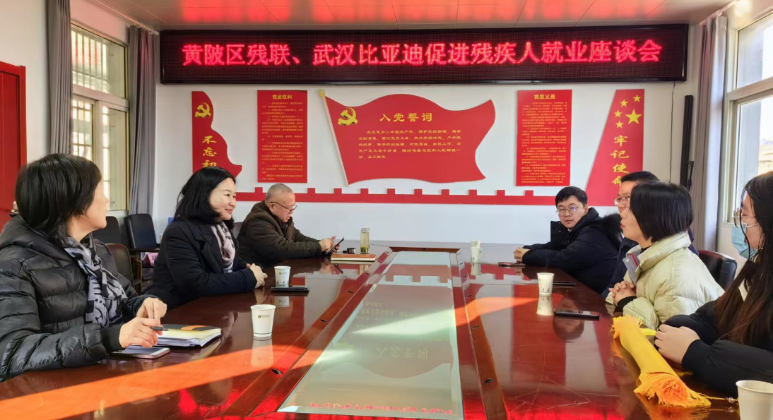 1月25日,黄陂区残联、武汉比亚迪汽车有限公司相关负责人召开促进残疾人就业座谈会,就“优化营商环境,携手促进残疾人就业”进行交流探讨。