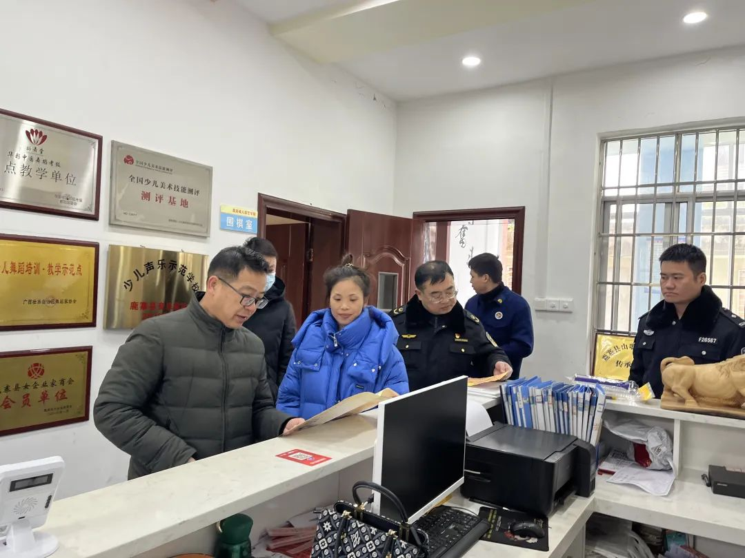 1月23日,鹿寨县“双减”工作领导小组办公室组织成员单位开展2024年寒假校外培训专项治理行动,进一步巩固校外培训治理成效,严防学科类培训隐形变异,强化非学科类培训监管,切实减轻中小学生校外培训负担。