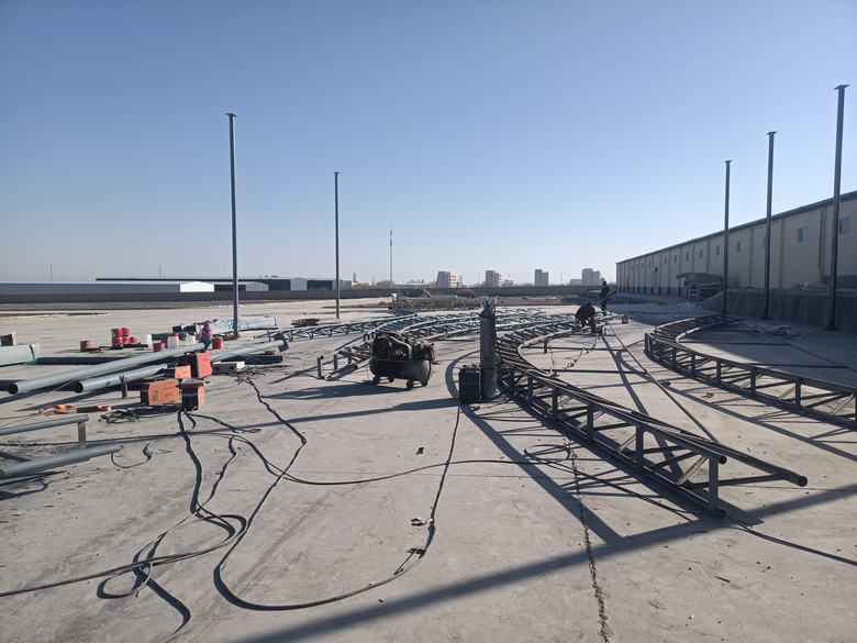 在总投资1.2亿的甘肃高台谷满仓农产品冷链仓储及加工集散中心项目现场,工人们正在抢抓时机,安装机械设备。该项目是2024年高台工业园区农副产品加工类项目重点推进项目,主要建设农产品保鲜库4座,总库容1.5万吨;速冻蔬菜生产线1条,真空玉米生产线1条,辣椒深加工生产线1条,年加工速冻蔬菜、玉米、辣椒2万吨;配套建设农产品冷链配送中心、质量检测中心、交易中心、尾菜及污水处理中心等设施。