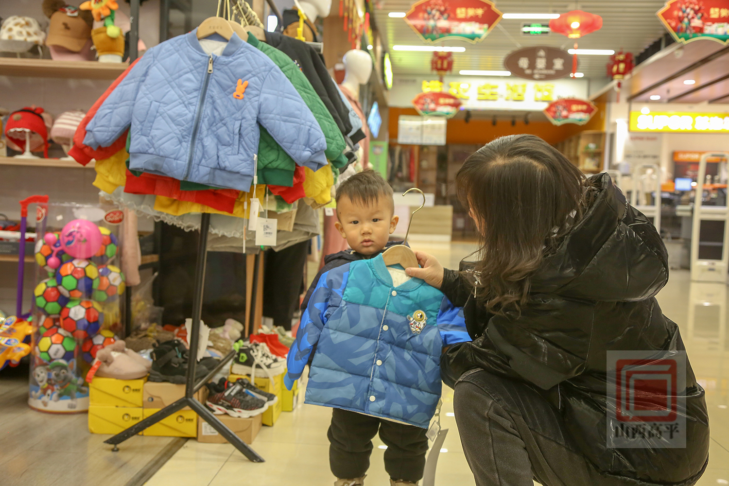 新年买新衣,也是喜迎新春的一种习俗和仪式感。在红旗新天地商场,喜庆热烈的音乐回荡在耳畔,烘托出了浓浓的年味。正在为孙子挑选棉服的市民邵书青笑呵呵地说道:“新春佳节快到了,带着孙子来挑选心仪的衣服,让孩子可以穿上新衣服,喜迎新春,欢度佳节。”?