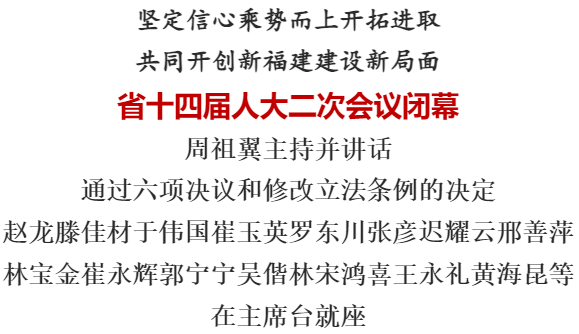 省十四届人大二次会议圆满完成各项议程,于1月27日下午在福建会堂闭幕。