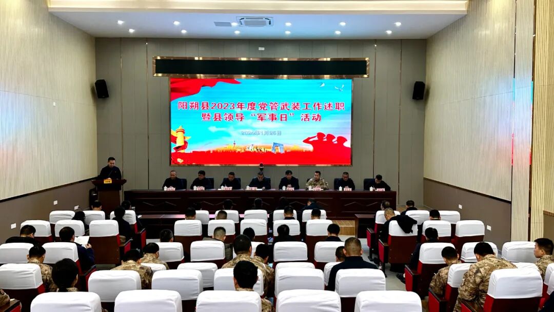 1月25日上午,阳朔县开展2023年度党管武装工作述职暨县领导“军事日”活动。县委书记周彦、县人大常委会主任陈庆武等县委、县人大常委会、县政府、县政协领导班子成员(含党组成员、调研员、提名人选),县人武部部长,各乡镇党委和政府主要领导,武装部长及专武干事参加活动。