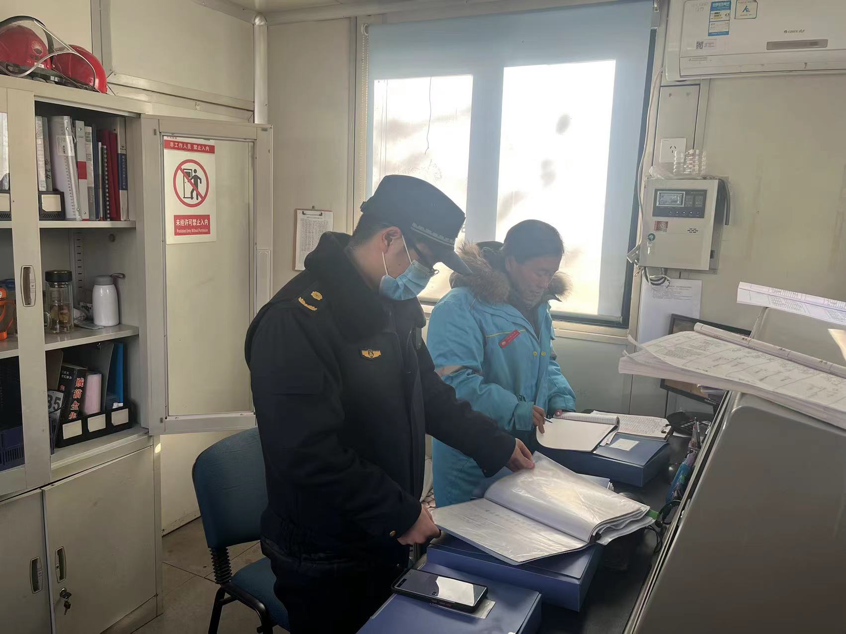1月22日,和平街执法队对辖区施工工地夜间施工情况进行巡查。(通讯员 和平街 丁亚宁)