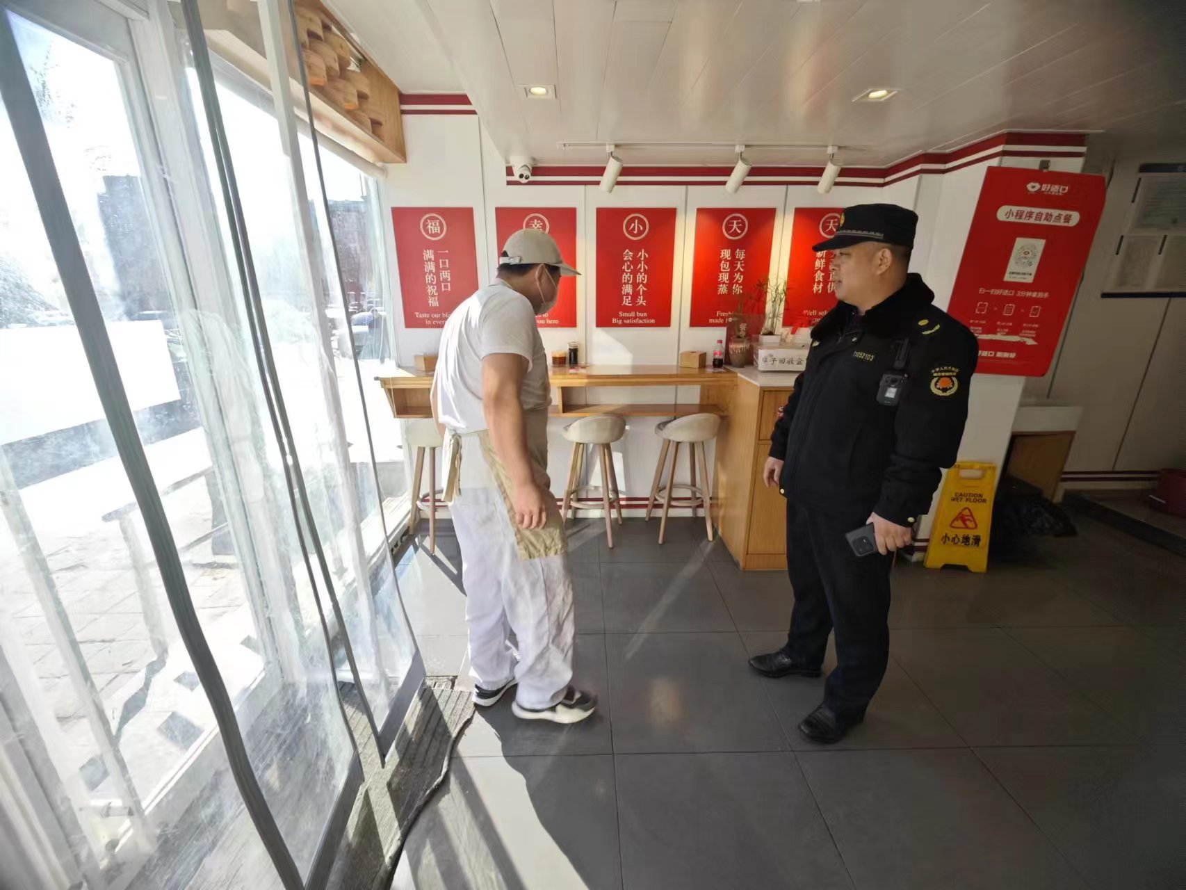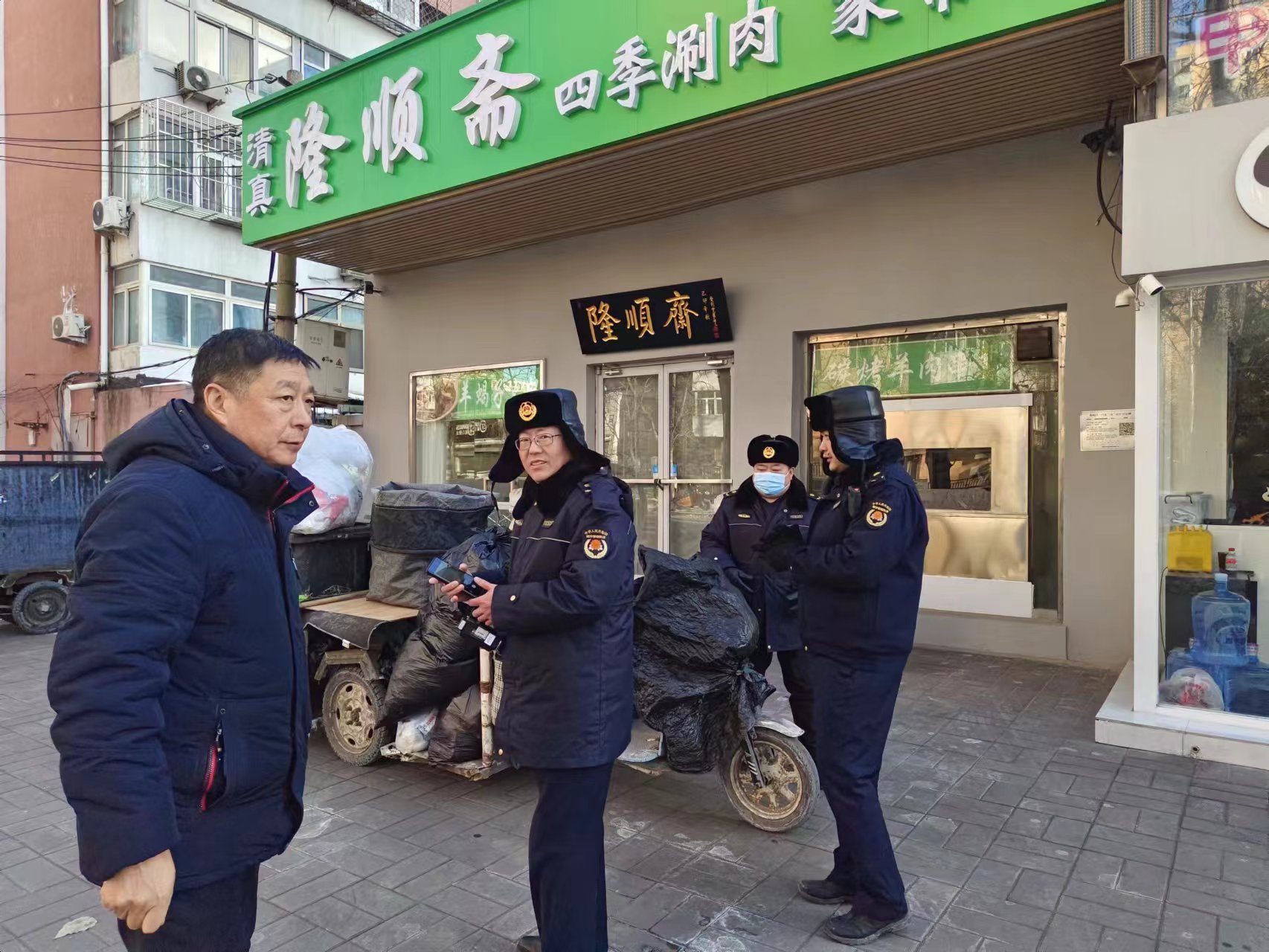 1月23日,奥运村执法队对辖区商户“门前三包”责任制落实情况进行检查。(通讯员 奥运村 龚丽丽)