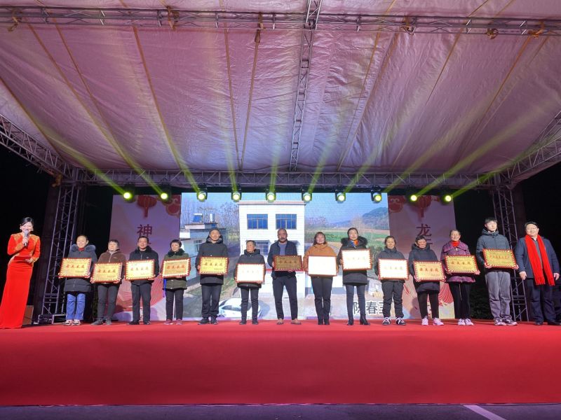 伴随着舞蹈《过年啦》的欢快节奏,青龙山村迎春文艺晚会拉开序幕,随后独唱《青龙山之歌》、民乐演奏《红歌连奏》及《像梦一样自由》等13个节目轮番上演。这些节目由村里自发组织的文艺团队精心准备,整场演出表演形式多样、精彩纷呈,引得观众掌声不断。其间还开展了有奖知识问答和“最美家庭”“产业示范户”“最美志愿者”等系列颁奖活动,让本次活动的形式更加丰富多样。