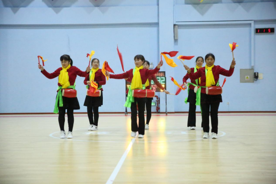 在比赛间歇,各村组织的啦啦队敲起腰鼓,跟着鼓点节奏跳起别具乡村特色的“助威舞”。