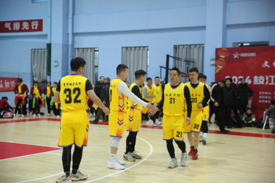赛事胶着,两支球队紧咬比分,你追我赶,毫不示弱。最终,新周场村代表队以74:71战胜金龙村队,获得首场胜利。