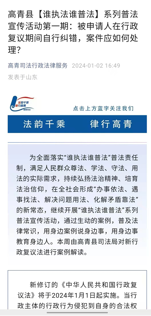 高青县多举措开展新修订行政复议法宣传