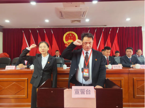 吾峰镇人民政府镇长黄梁财及副镇长郑琳珊进行宪法宣誓。