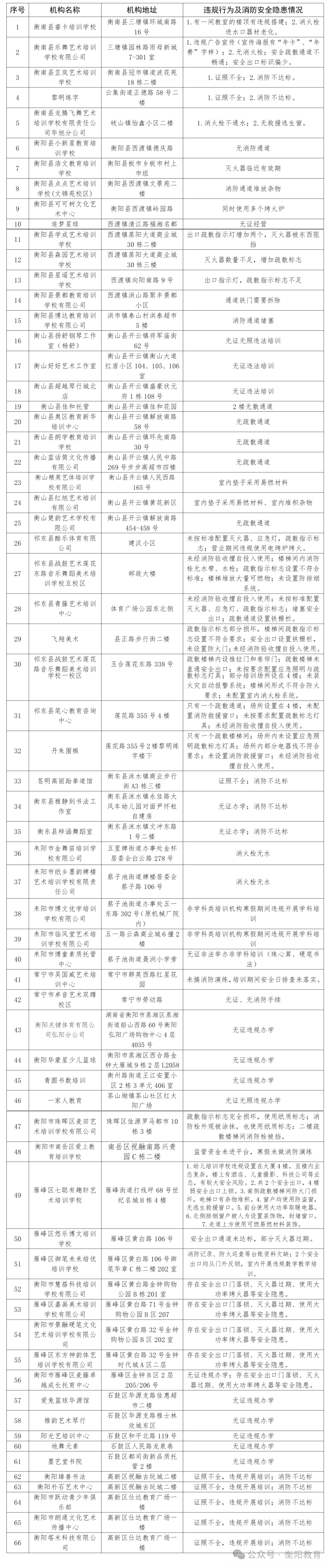曝光!衡阳通报66起校外培训违规行为及消防安全隐患