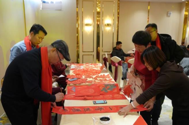 茶话会最后,全场高唱《早安,中国》,嘹亮的歌声让会场内洋溢着喜庆祥和的节日气氛。活动现场,市书法家协会的书法家挥毫泼墨为大家书写春联,还开展了非遗剪纸及手工体验活动及投壶、蒙眼敲锣等传统小游戏,进一步增加了对中华优秀传统文化的认同。