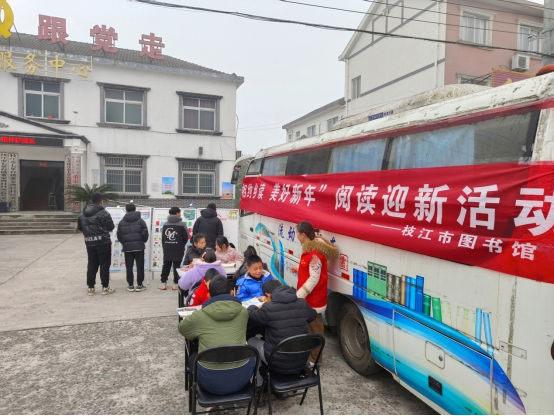 枝江融媒(通讯员 刘晓玲)为丰富广大群众文化生活,营造浓厚节日氛围, 1月30日上午,枝江市图书馆流动图书车在七星台镇董家湾村开展送书下乡活动,枝小图志愿服务队员与广大村民以及放寒假的孩子们共同在书香中喜迎新春佳节。