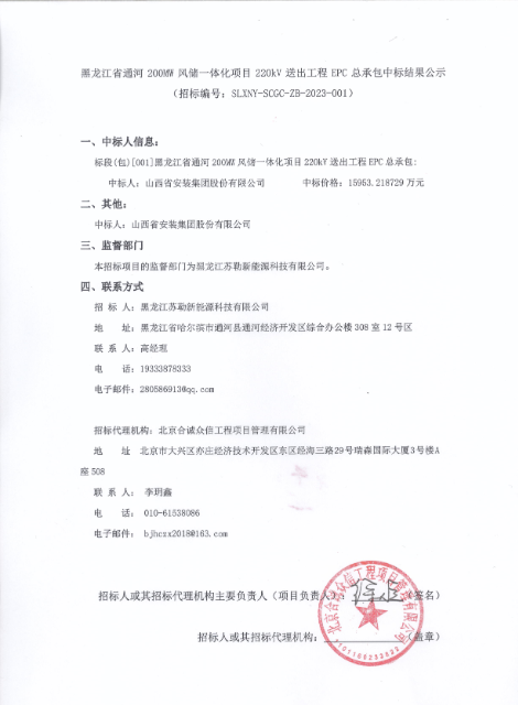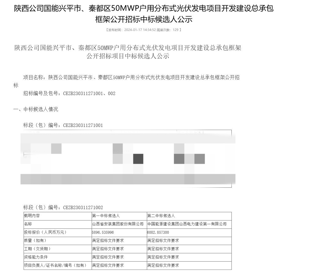 奋力拼搏创佳绩,捷报频传奏凯歌。第六工程公司喜迎2024开门红,成功中标陕西公司国能兴平市、秦都区50MWP户用分布式光伏发电项目开发建设总承包框架公开招标项目第二标段和黑龙江省通河200M风储一体化项目220kv送出工程EPC总承包项目,中标金额共计2亿元。