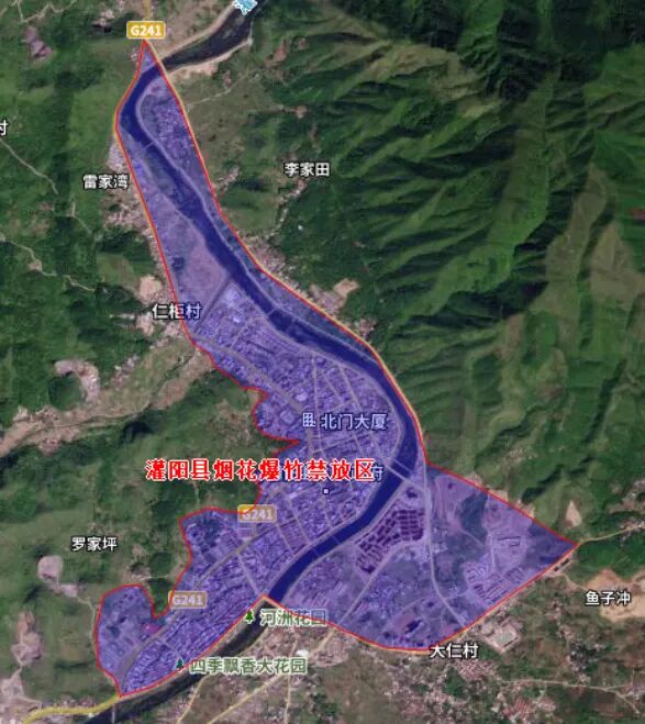 1.灌阳县人民政府所在地建成区:东至红旗中学(新中医院经义马路、双桥路至一桥)、南至土桥头、西至台山公园山脚(靠灌阳县城一侧)、北至官塘。