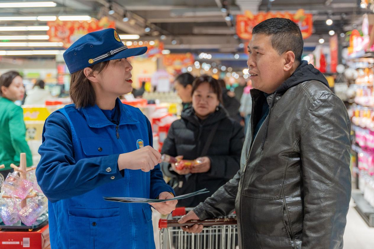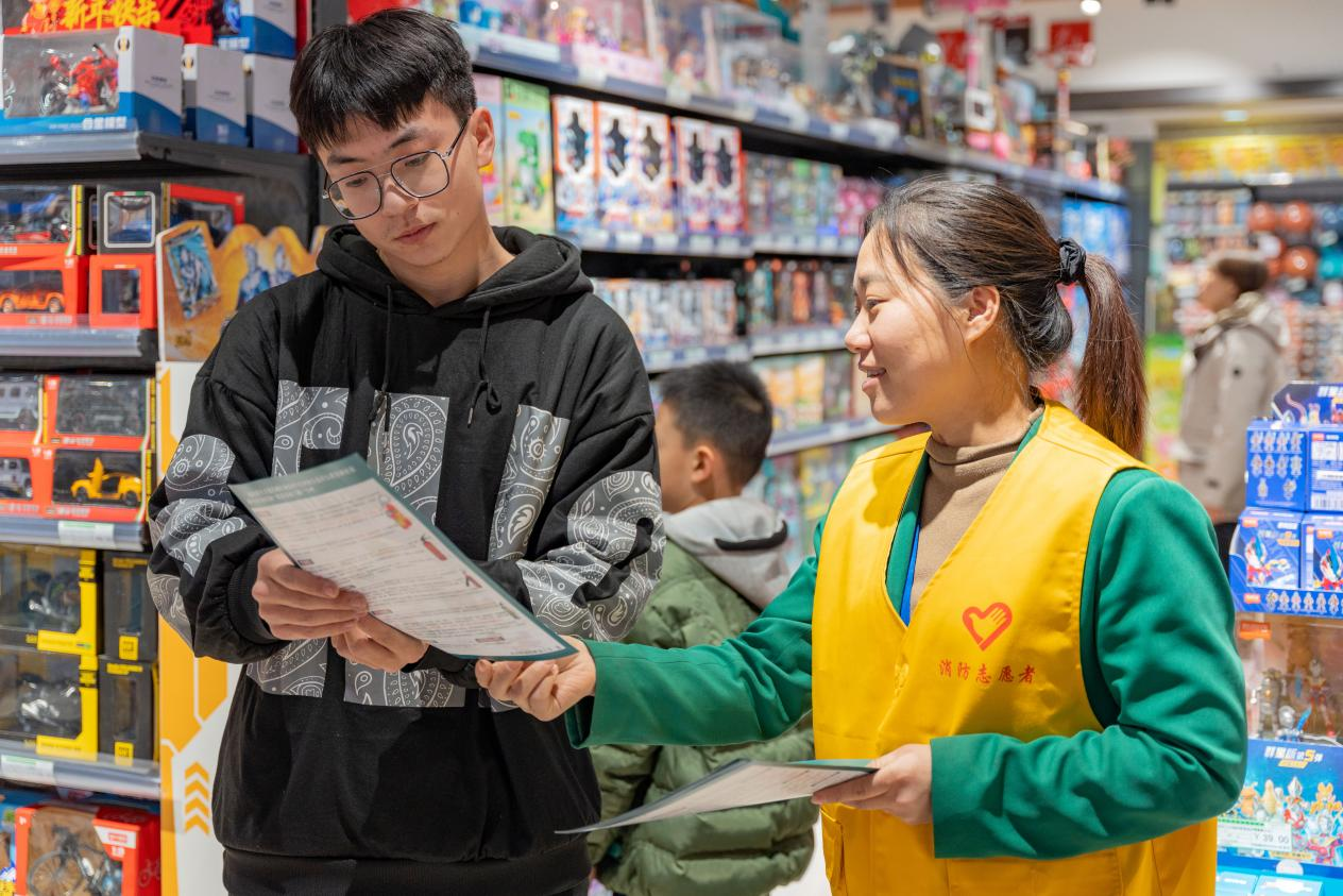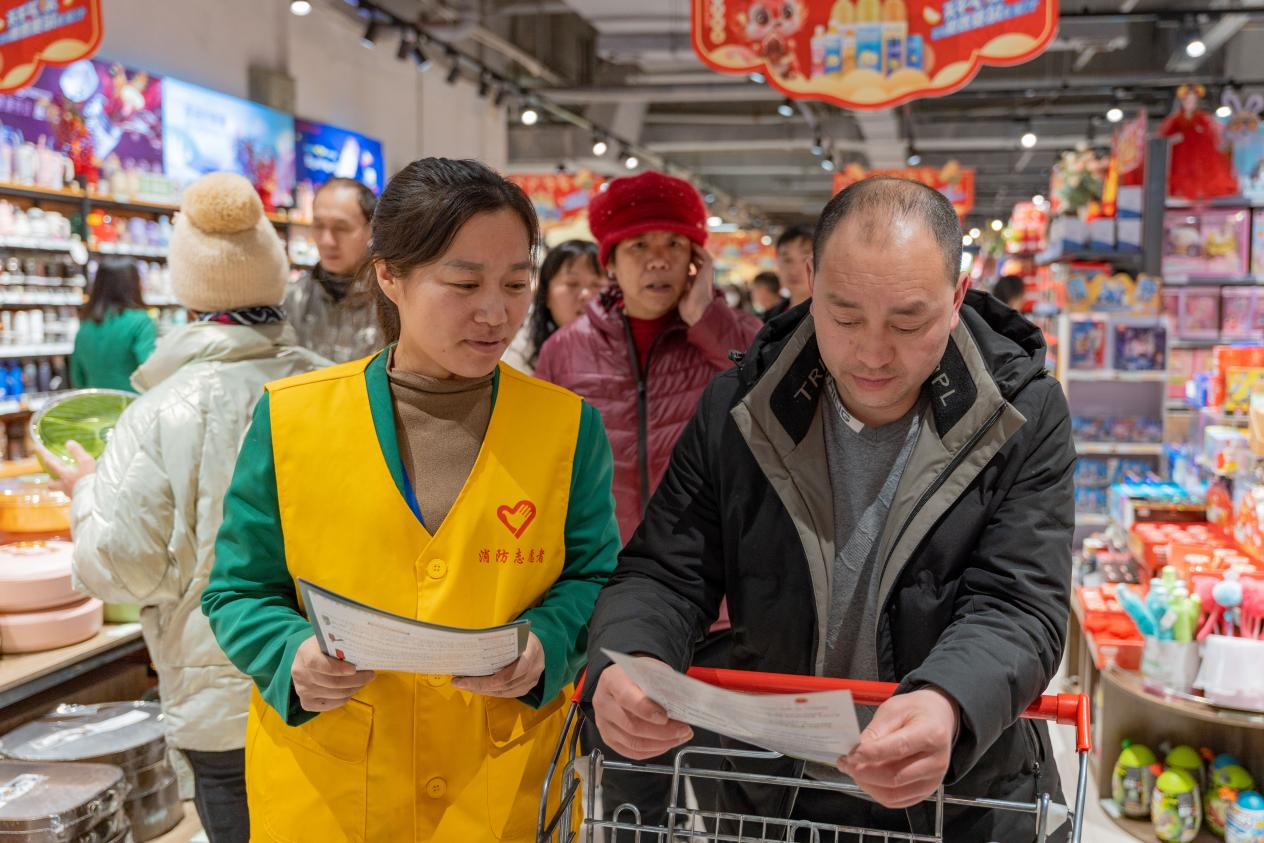 在购物小票摇身一变,成为消防“宣传员”的同时,市消防救援大队宣传小分队联合消防志愿者针对春节期间居家消防安全注意事项向过往购物群众讲解如何预防火灾隐患、如何正确扑救初起火灾、发生火灾后如何正确逃生等常识,提醒大家,春节期间烧香祈福一定要留人看守、清理周围可燃物,走亲访友要牢记“三清三关”,养成良好的消防安全习惯,防止火灾事故发生。