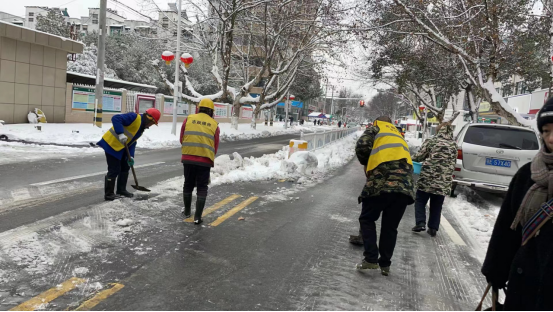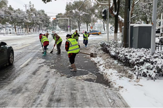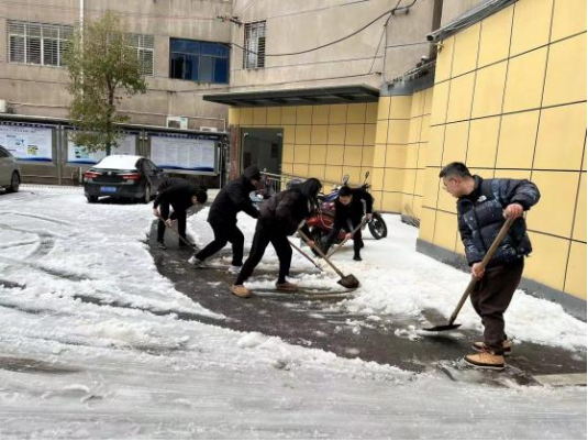 “雪不融、冰不化、人不退”。面对雨雪天气,市住建局按照“提前预判、积极应对、措施有力”的原则,不间断进行巡查,科学调度人员和机械设备,及时清理积雪,确保道路通畅,为群众出行安全保驾护航。