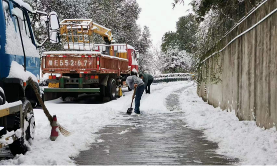 △枝江市园林绿化中心组织100名园林工人开展公园广场除冰扫雪和道路除障工作;在公厕出入口处铺设防滑垫;在公园拱桥、栈桥等结冰段拉警戒线警示提醒;同时加强道路绿化树木巡查,及时清理雨雪灾害天气造成的断枝,切实保障广大市民出行安全。