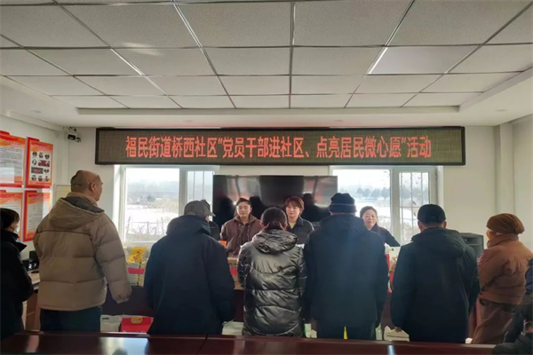 福民街道桥西社区充分发挥党员干部先锋模范作用,切实解决群众急难愁盼问题,福民街道桥西社区开展“党员干部进社区、点亮居民微心愿”活动,为辖区特殊群体送去关怀与温暖,市妇联党员干部、社区在职党员参加此次活动。