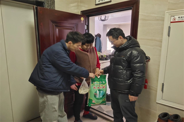 社区工作人员和志愿者带着分装好的爱心饺子和大米来到特殊群体家中,关切地询问他们近期的身体情况、生活上是否存在困难。老人们接过饺子,脸上满是笑容。饺子虽小,却凝结着社区大家庭的一片爱心,在这寒冷的冬日里,显得格外温暖。