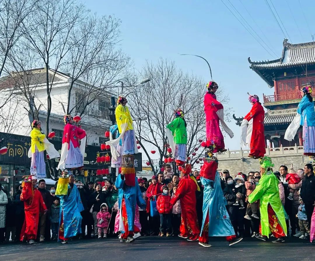 扛桩、舞狮等传统民俗表演呢