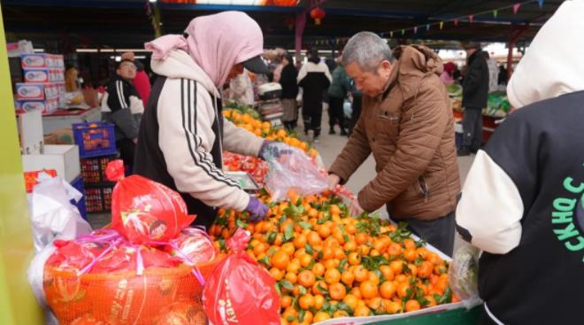 在年货大集上,羊杂碎、炸夹板、豆瓣糖、馓子等美食令人垂涎欲滴,果蔬粮油、鸡鸭鱼肉等年货琳琅满目,各个摊位前挤满了前来选购的游客、市民,他们或是品尝美食,或是挑选年货,现场吆喝声、欢笑声此起彼伏,交织成一曲欢快的迎春乐章,一股浓浓的烟火气息扑面而来。
